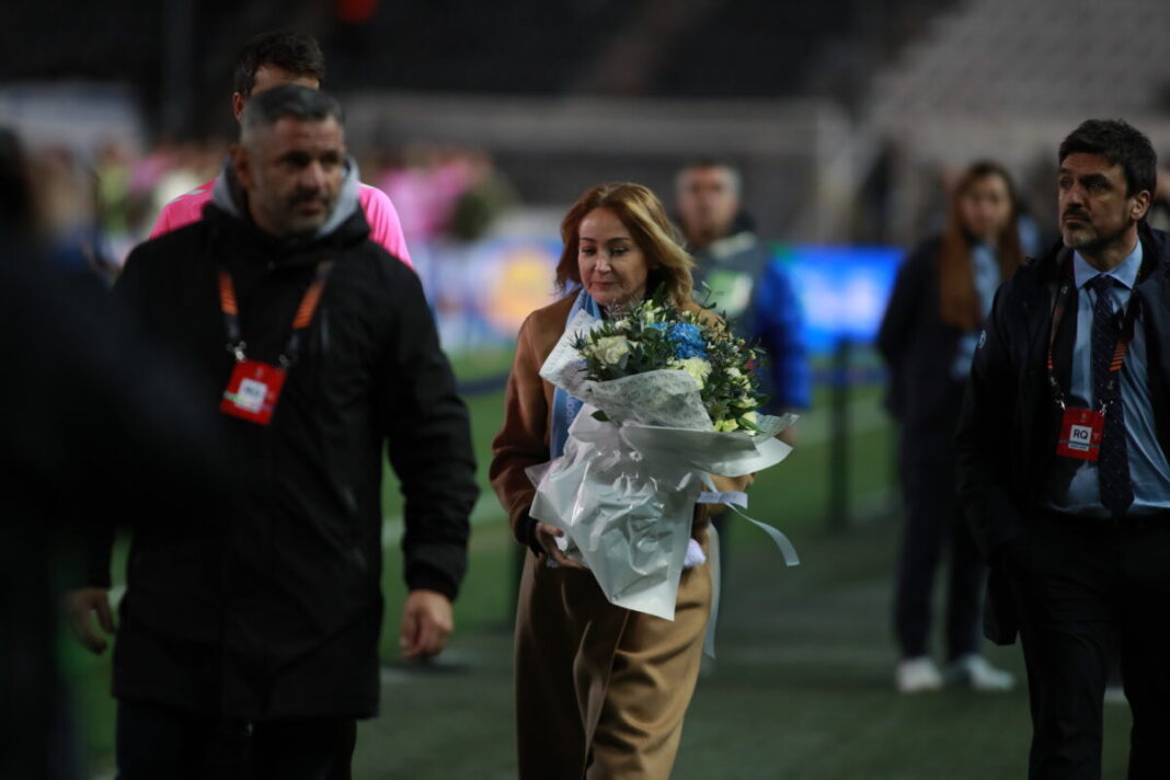 Η πρόεδρος της Θέλτα τίμησε τους 7 οπαδούς του ΠΑΟΚ στη Ρουμανία πριν το ματς, με ανάρτηση και λουλούδια στην Τούμπα, κερδίζοντας χειροκρότημα.