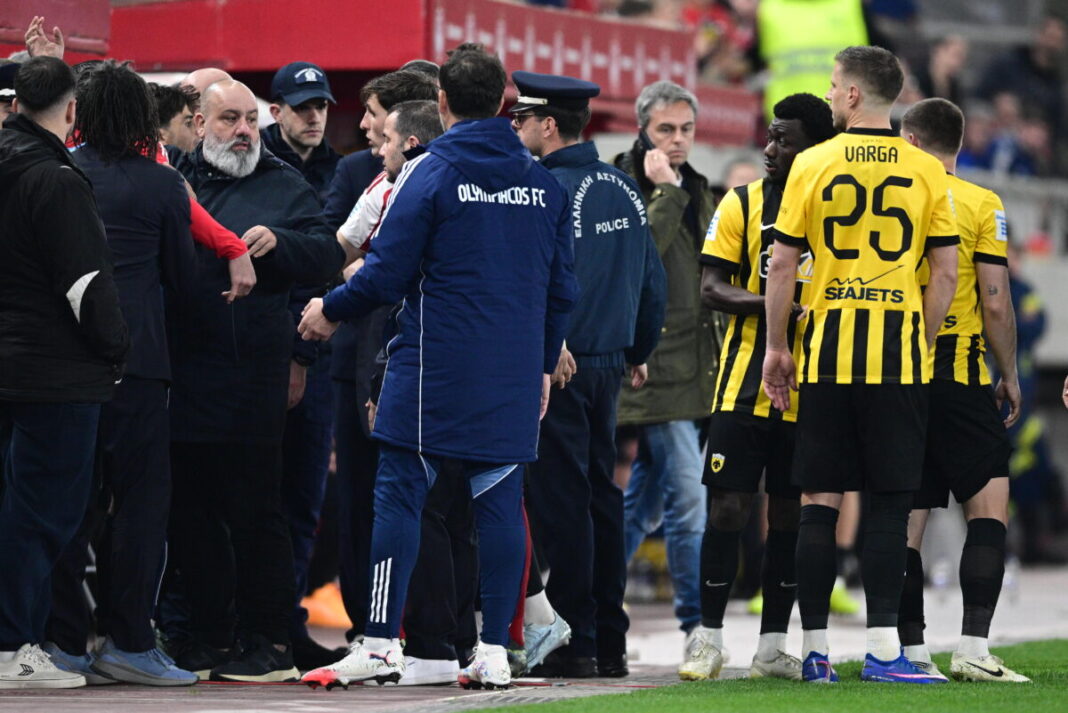 Ο διαιτητής του αγώνα Τομπάιας Στίλερ πήρε στους ποδοσφαιριστές της ΑΕΚ που περίμεναν στη φυσούνα, ενώ αυτοί του Ολυμπιακού ήταν στον αγωνιστικό χώρο, για να τους φωνάξει μέσα στο γήπεδο. Εκεί, υπήρξε ένταση ανάμεσα στον Δημήτρη Ναλιτζή και τον Ντάρκο Κοβάτσεβιτς.