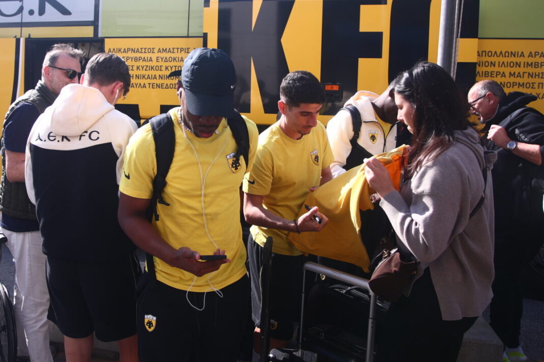 Η αποστολή της ΑΕΚ έφτασε στο «Ελ. Βενιζέλος» σε πολύ ευχάριστο κλίμα και εκεί υπήρχαν ορισμένοι φίλοι της ομάδας για να υποστηρίξουν τους παίκτες και το επιτελείο για την πρώτη μάχη με τη Ράγιο Βαγεκάνο στο Conference League.