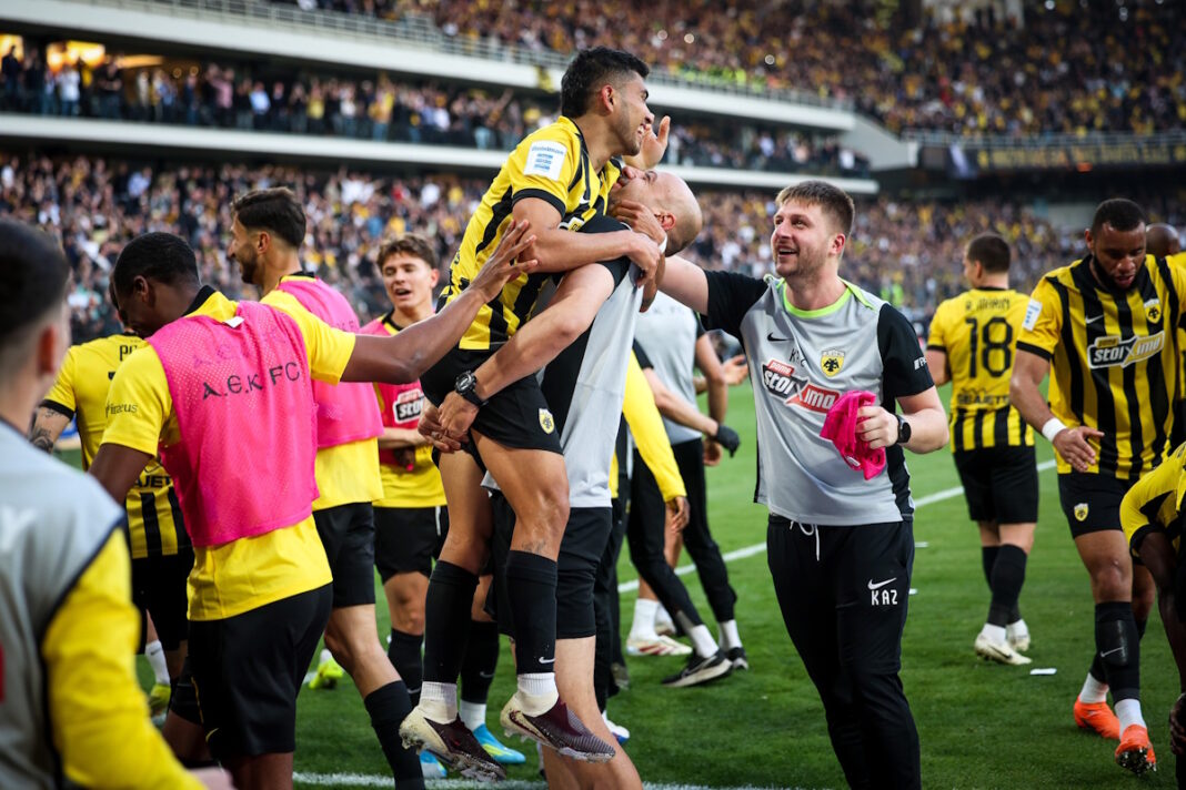 H AEK πέτυχε την Κυριακή (19.04.2026) μια πολύτιμη, αλλά και επιβλητική νίκη απέναντι στον ΠΑΟΚ (3-0) στην Allwyn Arena, για τη 2η αγωνιστική των play-off της Super League, αποτέλεσμα που διατήρησε την Ένωση σε ρόλο… οδηγού, στην κούρσα για την κατάκτηση του πρωταθλήματος.