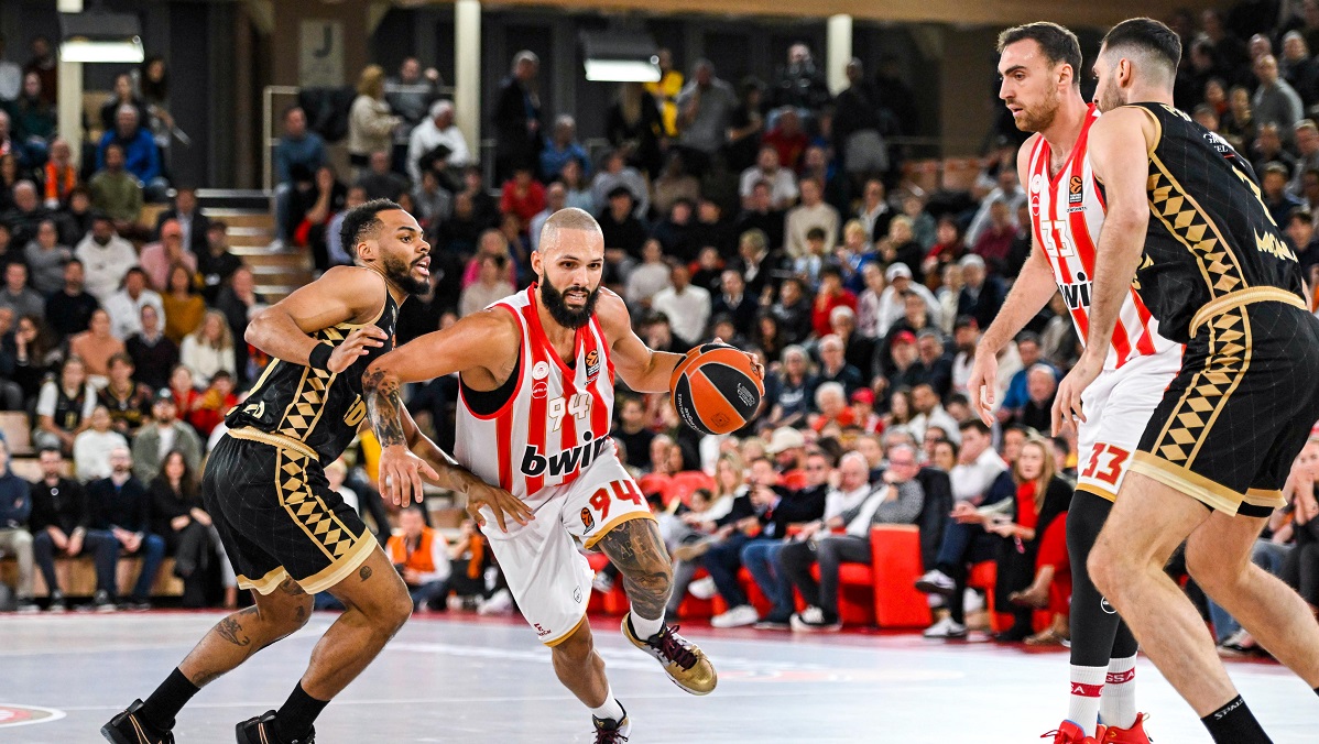Με τους Φουρνιέ και Βεζένκοφ να εκτελούν σχεδόν όλα τα επιθετικά πλάνα του Γιώργου Μπαρτζώκα, οι Πειραιώτες μπήκαν στην τρίτη περίοδο βρίσκοντας πόντους στην επίθεση, κάτι που τους έκανε να διατηρούν τον έλεγχο του αγώνα. Παρ’ όλα αυτά, δεν κατάφεραν να πάρουν κάποια σημαντική διαφορά. Οι δύο ομάδες πήγαιναν καλάθι-καλάθι μέχρι το 53-53 στο 24′. Τα δύο μεγάλα “όπλα” του Ολυμπιακού έστειλαν τους Πειραιώτες στο +5 (61-56) στο 27′, παρά την προσπάθεια του Ντιαλό να κρατήσει κοντά την ομάδα του Βασίλη Σπανούλη. Στη συνέχεια, ο Βεζένκοφ δέχθηκε ένα χτύπημα και αναγκάστηκε να βγει από το παιχνίδι, κάτι που χάλασε τον επιθετικό ρυθμό που είχε η ελληνική ομάδα. Έτσι, οι Μονεγάσκοι προσπέρασαν με 62-61, αλλά με καλάθια των Φουρνιέ και Γκος, ο Ολυμπιακός πήρε ξανά το προβάδισμα στο φινάλε του δεκαλέπτου με 65-62.
