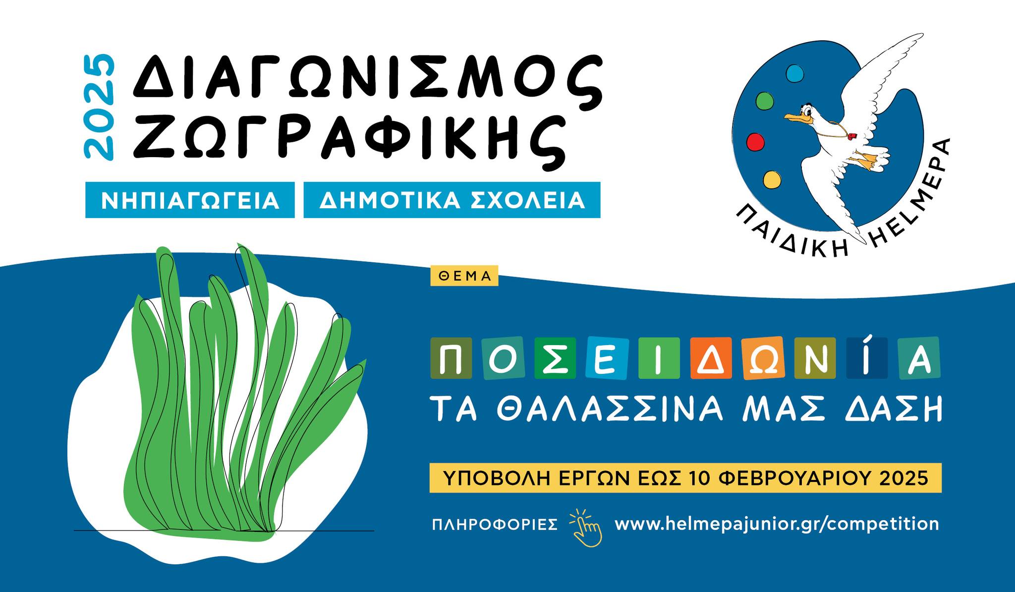 Διαγωνισμός ζωγραφικής της HELMEPA για μαθητές με θέμα την προστασία της Ποσειδωνίας, ενθαρρύνοντας τη συμμετοχή και τη δημιουργικότητα των παιδιών.