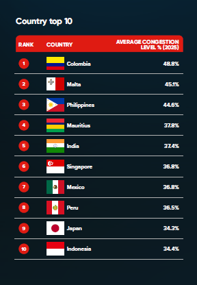 Οι 10 χώρες με το μεγαλύτερο μέσο επίπεδο κυκλοφοριακής συμφόρησης (2025)