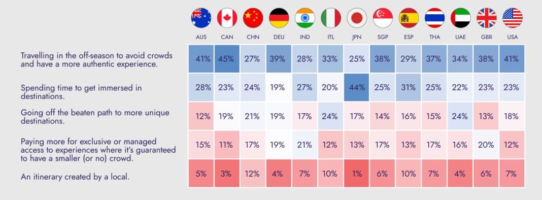 - Η Ιαπωνία δείχνει την υψηλότερη προτίμηση για εμβύθιση (44%), ενώ η Αυστραλία και οι ΗΠΑ προηγούνται στα ταξίδια εκτός εποχής (41%).