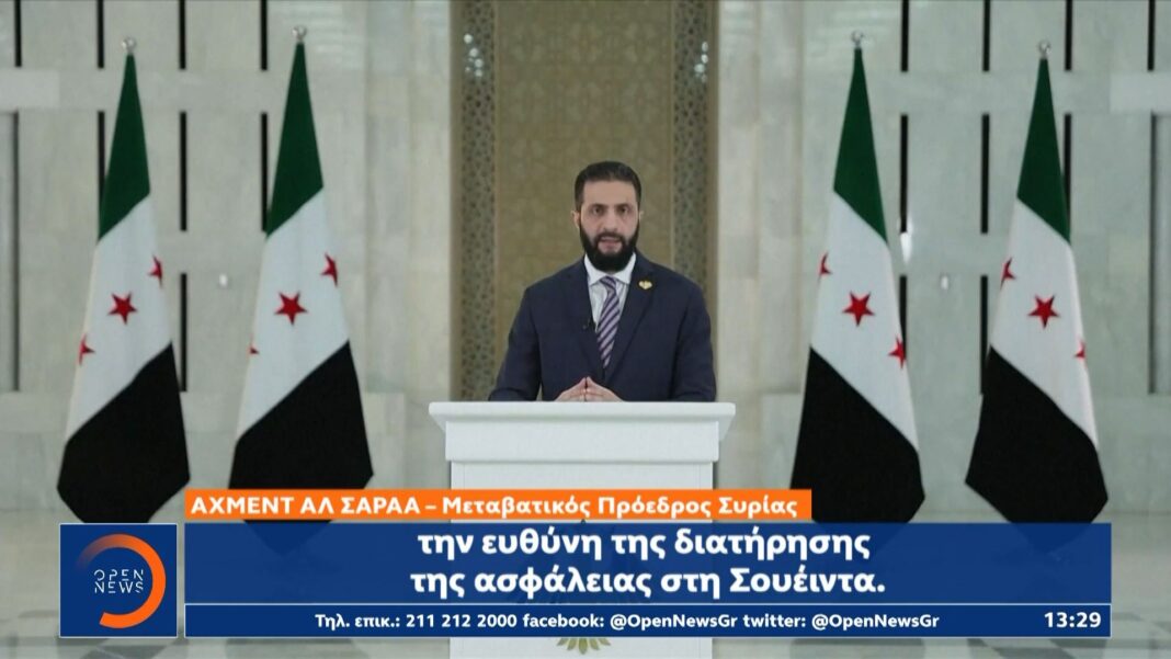 Τα συριακά στρατεύματα αποχωρούν από την επαρχία Σουέιντα μετά από εντολή του μεταβατικού ηγέτη της Συρίας, Αλ Σαραά. Στο διάγγελμά του, ο Σύριος ηγέτης τόνισε πως προτεραιότητα αποτελεί η σταθερότητα και το εθνικό συμφέρον της χώρας, βάζοντας τέλος στις συγκρούσεις στην περιοχή που κατοικείται κυρίως από Δρούζους.