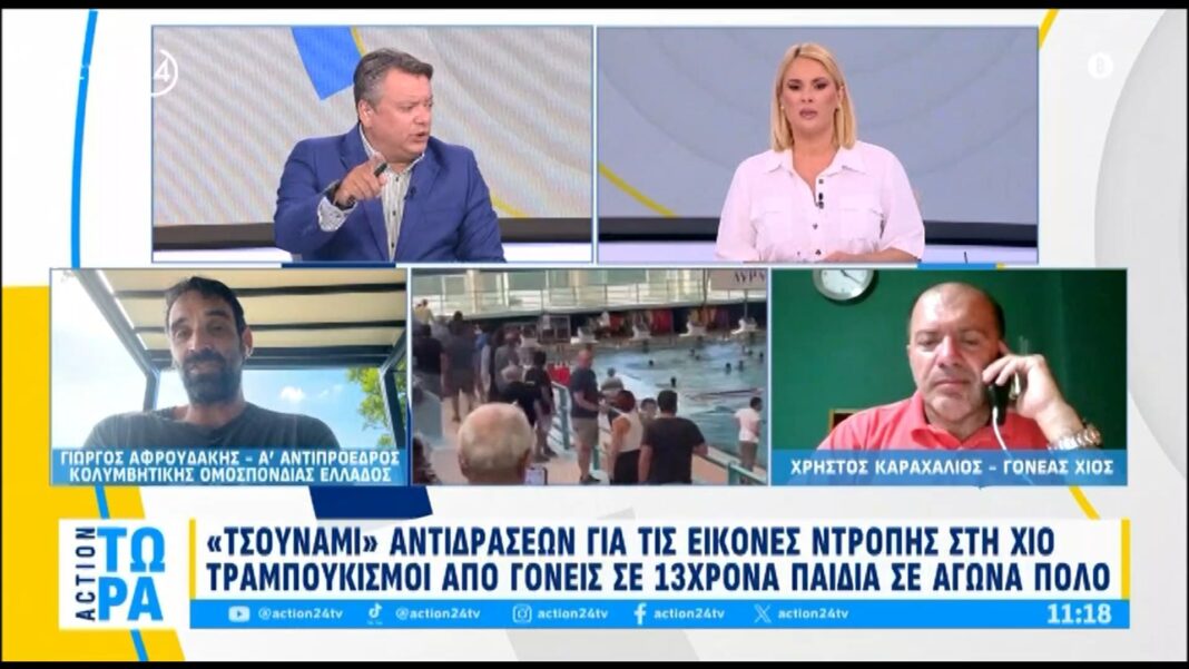 Ο αντιπρόεδρος της Κολυμβητικής Ομοσπονδίας Ελλάδας, Γιώργος Αφρουδάκης, μίλησε στην εκπομπή «ACTION ΤΩΡΑ» σχετικά με τα πρόσφατα επεισόδια στη Χίο. Τόνισε την ανάγκη άμεσων μέτρων για την αποτροπή παρόμοιων περιστατικών που επηρεάζουν αρνητικά την αθλητική κοινότητα και ιδιαίτερα τους νέους αθλητές.