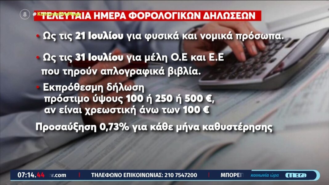 Λήγει σήμερα η προθεσμία υποβολής φορολογικών δηλώσεων με εκατοντάδες χιλιάδες πολίτες να δηλώνουν την τελευταία στιγμή και πρώτη δόση στις 31 Ιουλίου