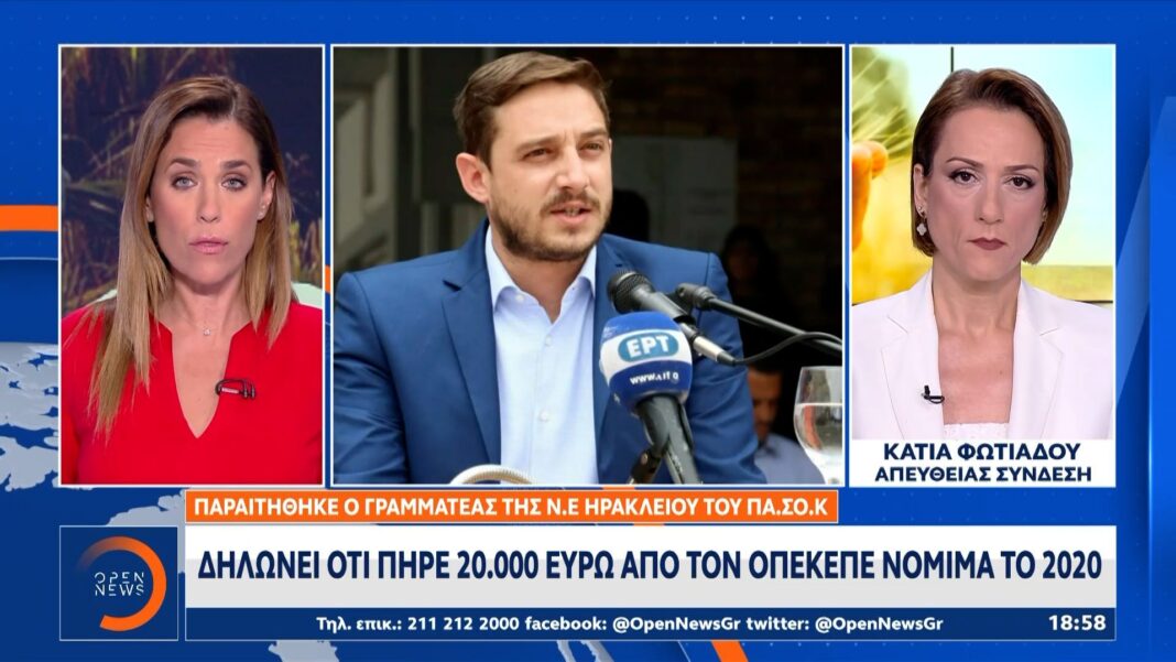 Ο γραμματέας της νομαρχιακής επιτροπής Ηρακλείου του ΠΑΣΟΚ υπέβαλε την παραίτησή του, ζητώντας παράλληλα την αναστολή της κομματικής του ιδιότητας. Η απόφασή του συνδέεται άμεσα με την ανάληψη θέσης στον Οργανισμό Πληρωμών και Ελέγχου Κοινοτικών Ενισχύσεων Προσανατολισμού και Εγγυήσεων (ΟΠΕΚΕΠΕ).