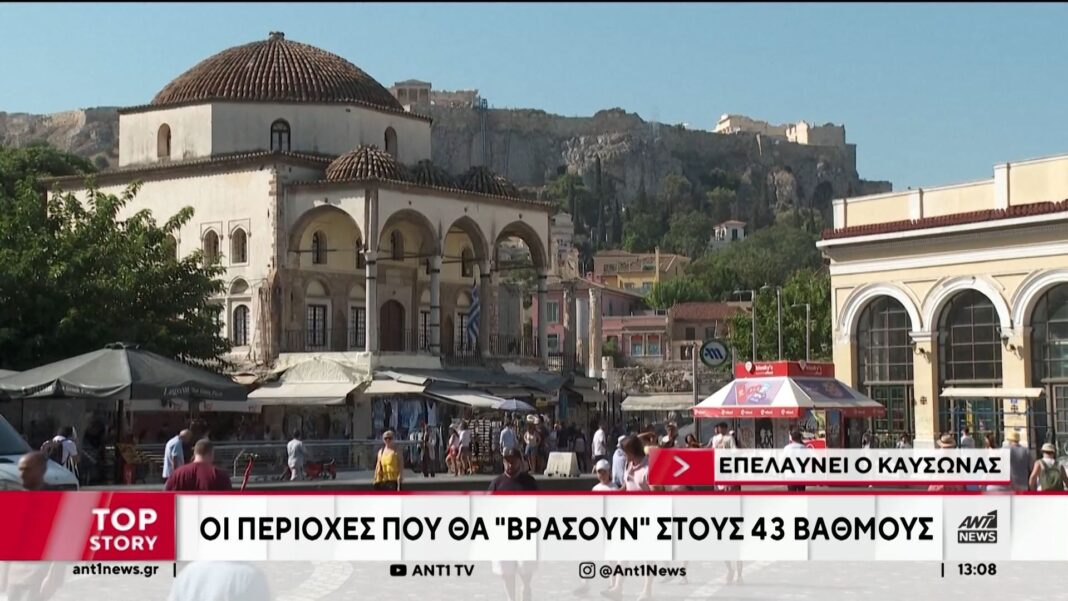 Το νέο κύμα καύσωνα σαρώνει τη χώρα με τον υδράργυρο να σκαρφαλώνει στους 43 βαθμούς Κελσίου σε αρκετές περιοχές. Σύμφωνα με τον μετεωρολόγο του ΑΝΤ1, Τάσο Αρνιακό, η θερμοκρασία θα παραμείνει σε υψηλά επίπεδα για τουλάχιστον 48 ώρες, ενώ ιδιαίτερη προσοχή χρειάζεται στη Θεσσαλία και την Κεντρική Μακεδονία.
