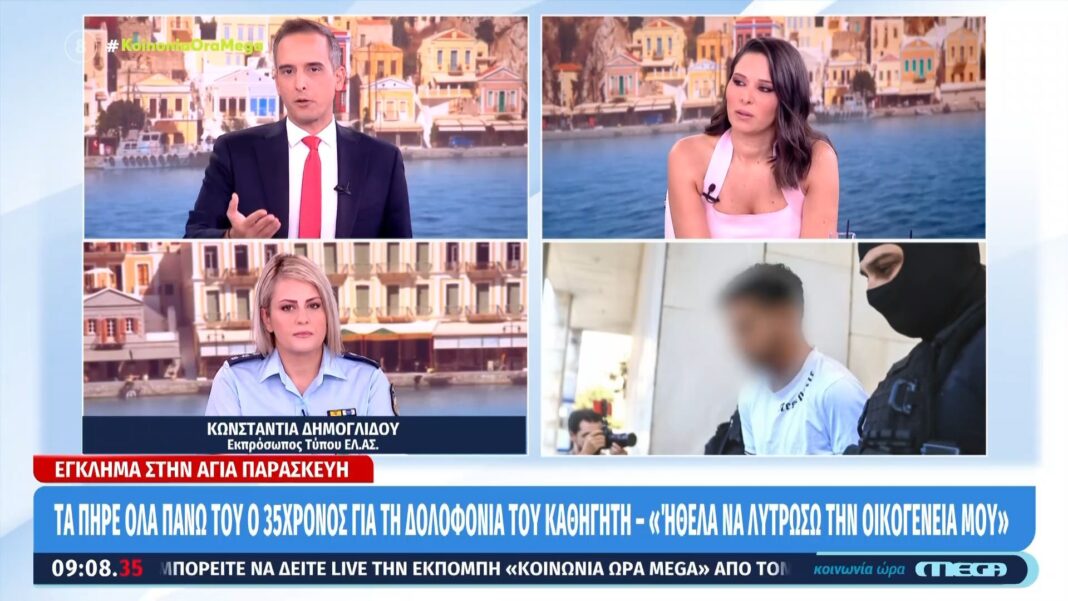 Η Εκπρόσωπος Τύπου της ΕΛ.ΑΣ., Κωνσταντία Δημογλίδου, παρέχει διευκρινίσεις σχετικά με την υπόθεση δολοφονίας του Πολωνού καθηγητή στην Αγία Παρασκευή, τονίζοντας πως η απόφαση των αρχών βασίζεται σε συγκεκριμένα στοιχεία. Παράλληλα, αναφέρεται στην καταγγελία βιασμού 31χρονης από τον πατέρα της στη Ρόδο και στο περιστατικό μαχαιρώματος ηλικιωμένης στο κέντρο της Αθήνας.