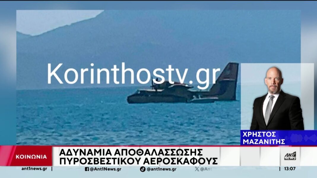 Πυροσβεστικό αεροσκάφος Καναντέρ αντιμετώπισε τεχνικό πρόβλημα κατά την αποθαλάσσωση στον Κορινθιακό Κόλπο εν μέσω επιχειρήσεων κατάσβεσης
