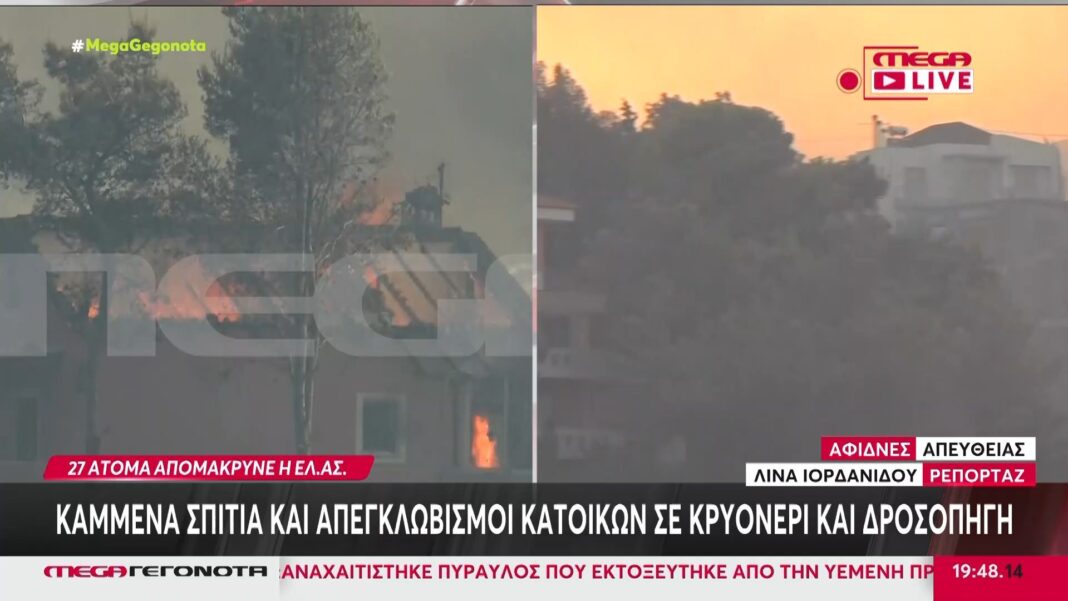 Φωτιές σε Αττική, Μεσσηνία, Κύθηρα & Εύβοια – Το MEGA στα πύρινα μέτωπα