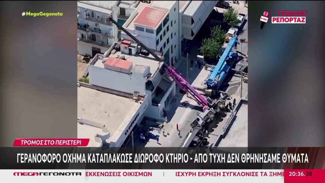 Περιστέρι: Γερανοφόρο όχημα καταπλάκωσε διώροφη πολυκατοικία