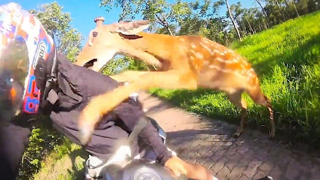 Ελαφάκι… χούλιγκαν καταχερίζει μοτοσικλετιστή!