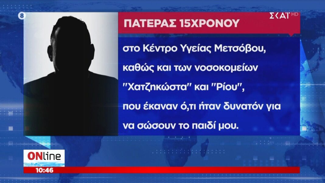 Με συγκίνηση και ευγνωμοσύνη, ο πατέρας του 15χρονου που υπέστη σοβαρή θερμοπληξία στο Μέτσοβο απευθύνει δημόσιες ευχαριστίες προς όλους όσους συνέβαλαν στη διάσωση του παιδιού του. Το περιστατικό συγκλόνισε την τοπική κοινωνία, με τις υπηρεσίες έκτακτης ανάγκης να ανταποκρίνονται άμεσα στην κρίσιμη κατάσταση.