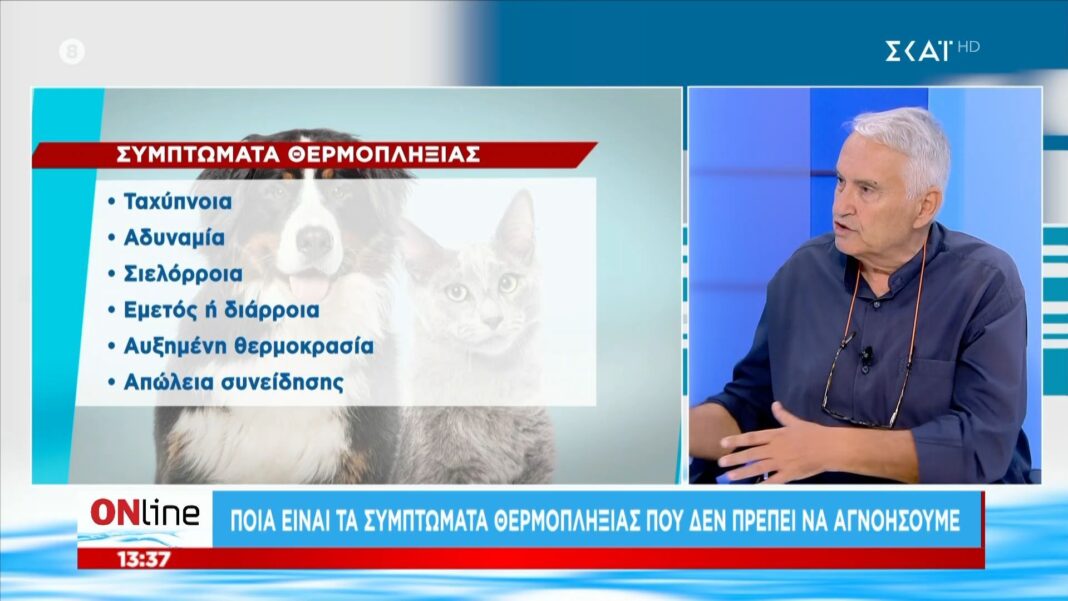 Παράλληλα, ο κτηνίατρος Τάσος Κανούρης επισημαίνει τα βασικά συμπτώματα θερμοπληξίας στα κατοικίδια που απαιτούν άμεση προσοχή. Η έντονη λαχάνιασμα, η αδυναμία, η ζαλάδα και η αύξηση της θερμοκρασίας του σώματος αποτελούν ενδείξεις που χρειάζονται άμεση αντιμετώπιση για την προστασία των ζώων μας.