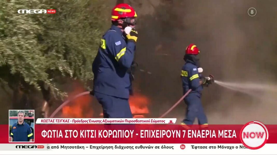 Σε εξέλιξη βρίσκεται πυρκαγιά στον οικισμό Κίτσι στο Κορωπί, με τις δυνάμεις της Πυροσβεστικής να επιχειρούν με 7 εναέρια μέσα για την κατάσβεσή της. Η φωτιά εκδηλώθηκε νωρίς το απόγευμα και λόγω των ισχυρών ανέμων που πνέουν στην περιοχή, υπάρχει κίνδυνος επέκτασης προς κατοικημένες περιοχές.