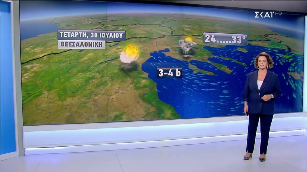 Οι μετεωρολόγοι προειδοποιούν για επικίνδυνα καιρικά φαινόμενα στα νησιά του Ιονίου με πιθανότητα χαλαζοπτώσεων. Συνιστάται ιδιαίτερη προσοχή στους οδηγούς και τους λουόμενους, καθώς οι άνεμοι στο Αιγαίο θα φτάσουν τα 7 μποφόρ. Το κύμα καύσωνα αναμένεται να υποχωρήσει σταδιακά από την Πέμπτη.
