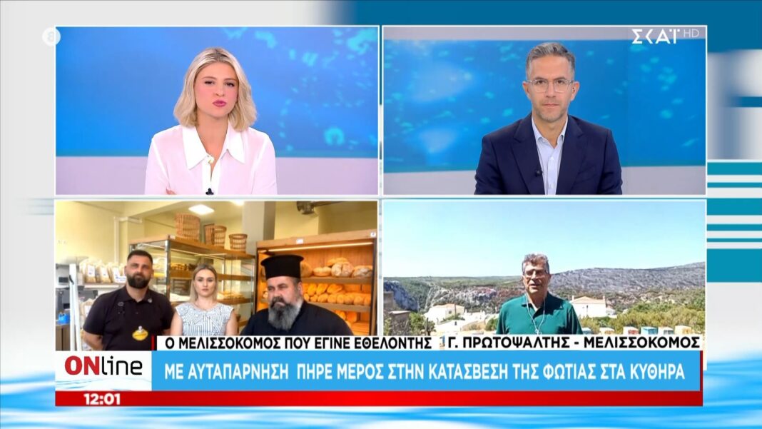 Ο Γιώργος Πρωτοψάλτης μοιράζεται τις εμπειρίες του από την κατάσβεση της πρόσφατης πυρκαγιάς στα Κύθηρα. Ο επαγγελματίας μελισσοκόμος περιγράφει πώς η αγάπη για τη φύση τον οδήγησε στον εθελοντισμό στην πυροσβεστική, αντιμετωπίζοντας επικίνδυνες καταστάσεις για να προστατεύσει το περιβάλλον.