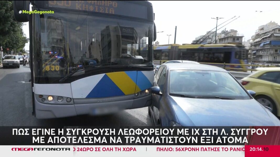 Σοβαρή σύγκρουση λεωφορείου με αυτοκίνητο στη Λεωφόρο Συγγρού με έξι τραυματίες, μεταξύ των οποίων και ένα παιδί, προκαλώντας προσωρινή διακοπή της κυκλοφορίας