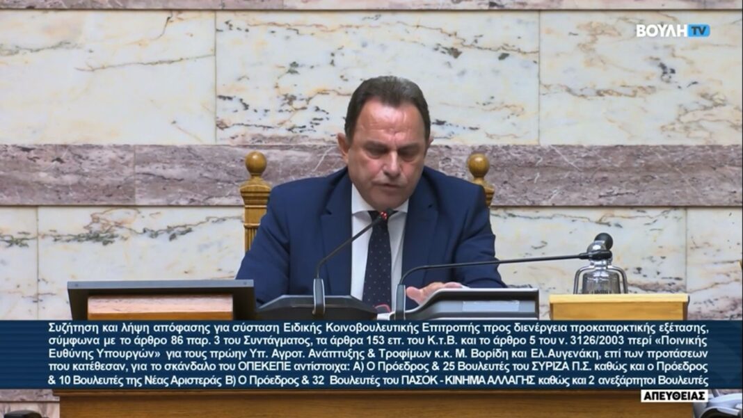 Έντονη αντιπαράθεση σημειώθηκε στο Κοινοβούλιο κατά τη συζήτηση των προτάσεων ΠΑΣΟΚ και ΣΥΡΙΖΑ-Νέας Αριστεράς για σύσταση προανακριτικής επιτροπής. Στο επίκεντρο βρέθηκε η διερεύνηση πιθανών ποινικών ευθυνών των κ.κ. Βορίδη και Αυγενάκη σχετικά με το σκάνδαλο του ΟΠΕΚΕΠΕ.