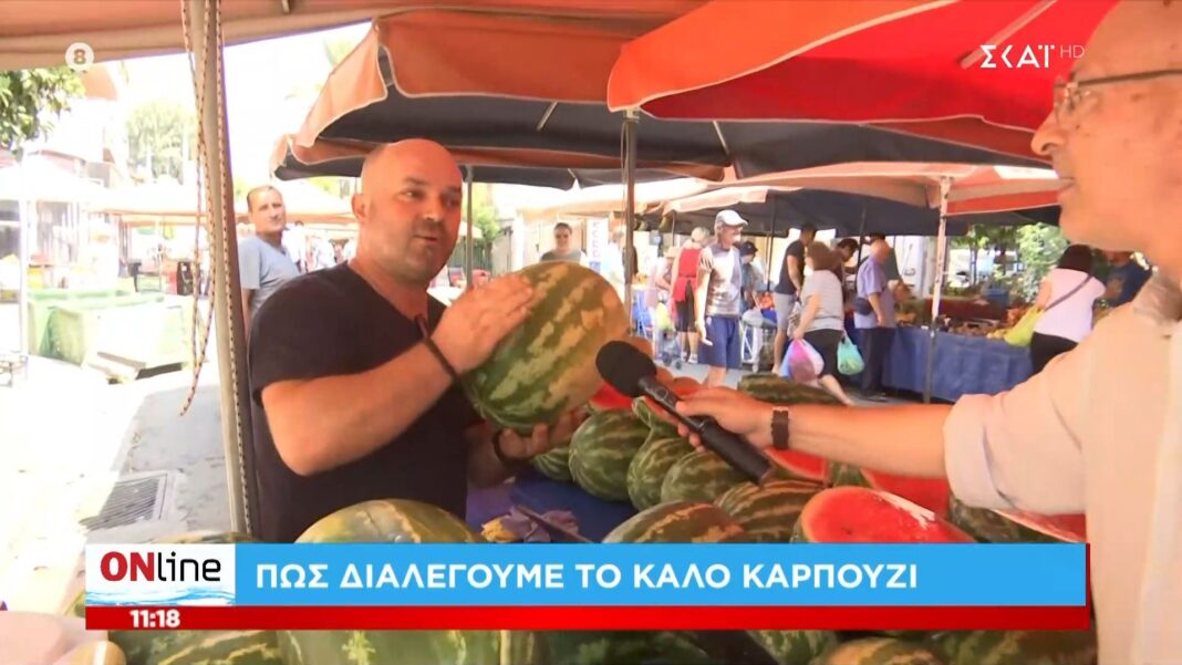 Ο έμπειρος μανάβης Γιώργος Τσελίκας μοιράζεται πολύτιμες συμβουλές για την επιλογή του ιδανικού καρπουζιού στη λαϊκή αγορά. Παρουσιάζει τα βασικά χαρακτηριστικά που πρέπει να προσέχουμε, όπως ο ήχος κατά το χτύπημα, το χρώμα της φλούδας και το σημείο επαφής με το έδαφος.