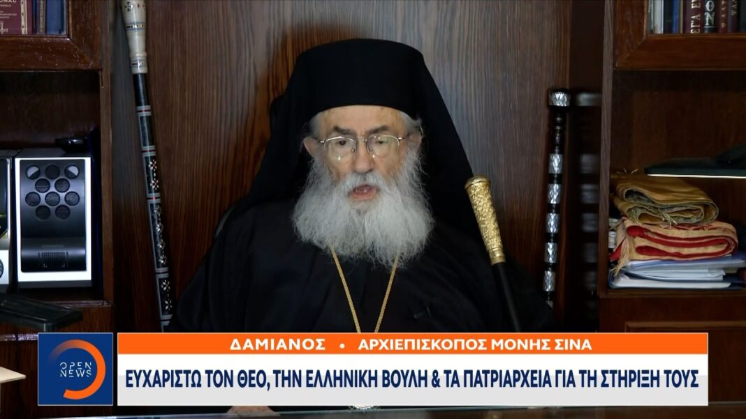Σε πρόσφατες δηλώσεις του, ο Αρχιεπίσκοπος Σιναίου Δαμιανός εξέφρασε την ευγνωμοσύνη του προς τον Θεό, τη Βουλή και τα Πατριαρχεία για τη στήριξη που του παρείχαν. Η τοποθέτησή του έρχεται ως απάντηση στις προσπάθειες μερίδας μοναχών της Μονής Σινά να τον απομακρύνουν από τη θέση του.