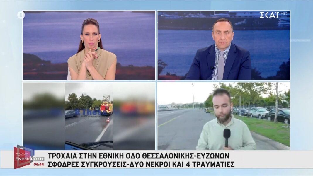Τραγικός ο απολογισμός από τα χθεσινά τροχαία δυστυχήματα στην εθνική οδό Θεσσαλονίκης-Ευζώνων. Δύο άνθρωποι έχασαν τη ζωή τους και τέσσερις τραυματίστηκαν, εκ των οποίων ο ένας νοσηλεύεται σε κρίσιμη κατάσταση. Οι συγκρούσεις σημειώθηκαν υπό συνθήκες έντονης βροχόπτωσης και περιορισμένης ορατότητας.
