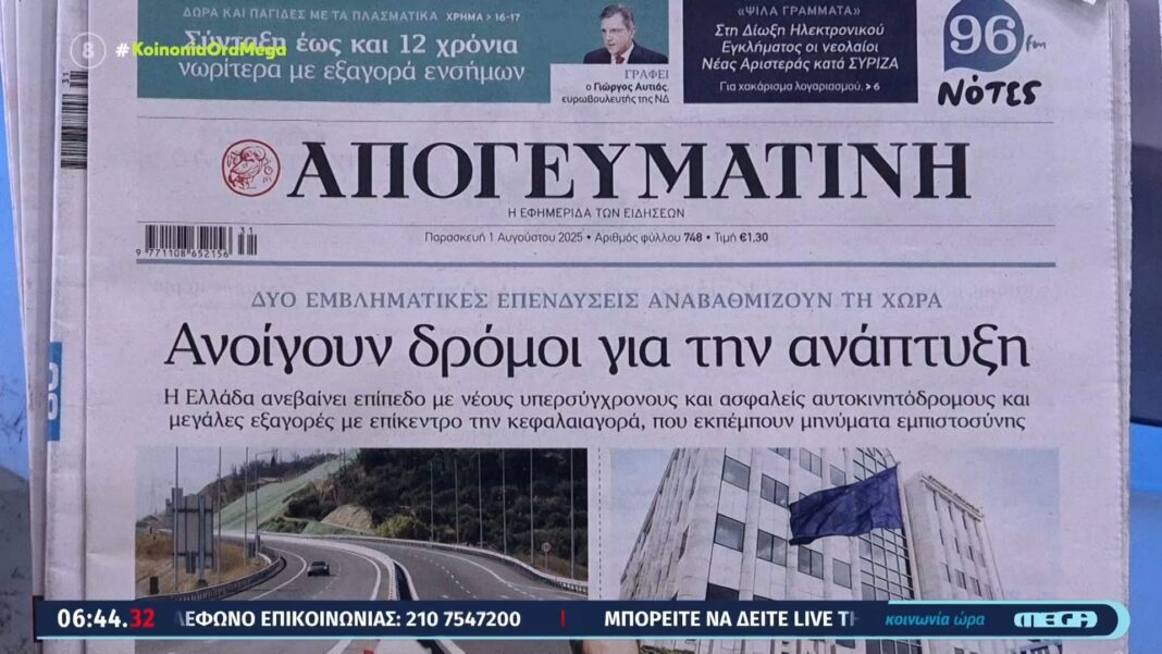 Η σημερινή επισκόπηση του Τύπου παρουσιάζει τα κύρια θέματα που απασχολούν τις εφημερίδες την 1η Αυγούστου 2025. Οι πολιτικές εξελίξεις και οι οικονομικές αναλύσεις κυριαρχούν στα πρωτοσέλιδα, με ιδιαίτερη έμφαση στις νέες κυβερνητικές αποφάσεις για την ενεργειακή κρίση και τα μέτρα στήριξης των νοικοκυριών.