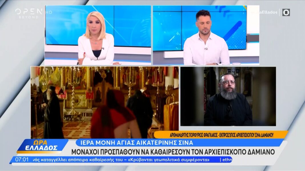 Έντονη αναταραχή επικρατεί στη Μονή του Σινά, όπου ομάδα μοναχών επιχειρεί να καθαιρέσει τον Αρχιεπίσκοπο Δαμιανό. Ο Αρχιεπίσκοπος κατήγγειλε δημόσια τις ενέργειες αυτές ως αντικανονικές, υποστηρίζοντας πως υπονομεύουν την πνευματική συνοχή της ιστορικής Αδελφότητας.