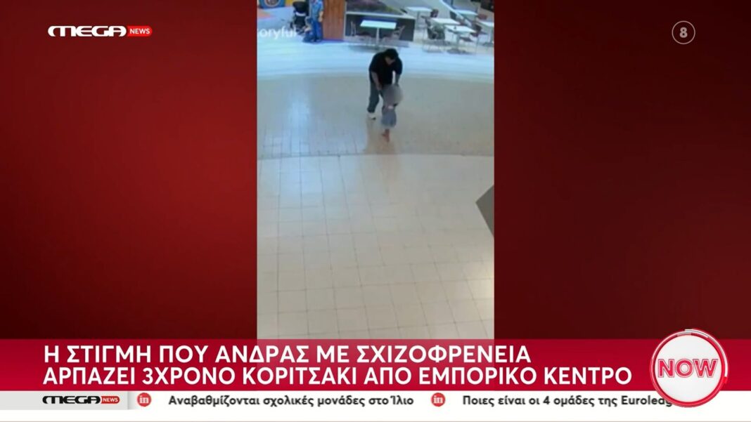 Τρομακτικό περιστατικό καταγράφηκε σε κάμερα ασφαλείας εμπορικού κέντρου στις ΗΠΑ, όταν ένας άνδρας με διαγνωσμένη σχιζοφρένεια άρπαξε στην αγκαλιά του ένα τρίχρονο κοριτσάκι. Το παιδί είχε απομακρυνθεί από τον πατέρα του για λίγα δευτερόλεπτα, δίνοντας την ευκαιρία στον δράστη να επιχειρήσει την αρπαγή.