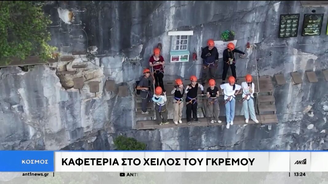 Σε υψόμετρο 2.800 μέτρων στην επαρχία Χουνάν της Κίνας, λειτουργεί ένα καφέ που προσφέρει μοναδική θέα και αδρεναλίνη. Το κατάστημα είναι χτισμένο στην πλαγιά απότομου βράχου και οι επισκέπτες πρέπει να διασχίσουν μια στενή γέφυρα πάνω από χαράδρα για να απολαύσουν τον καφέ τους.