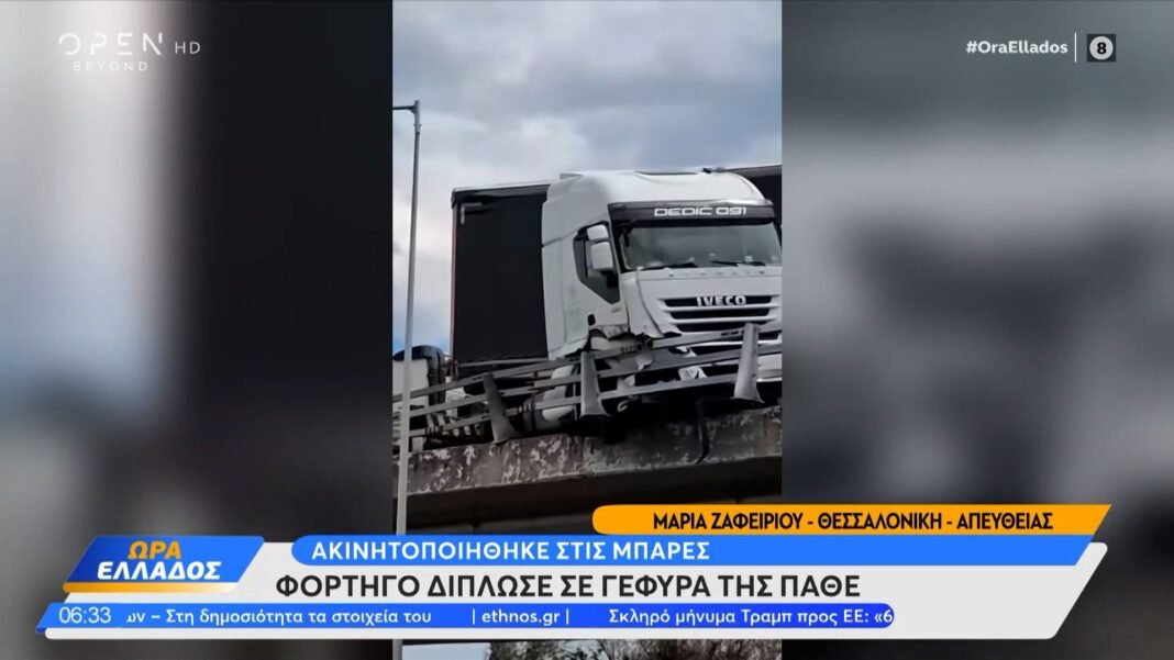 Φορτηγό δίπλωσε σε γέφυρα της ΠΑΘΕ