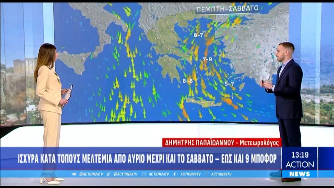 Έντονο κύμα μελτεμιών αναμένεται να σαρώσει τη χώρα από την Πέμπτη έως το Σάββατο, με τις ριπές να φτάνουν τοπικά έως και τα 9 Μποφόρ. Οι ισχυροί άνεμοι αυξάνουν σημαντικά τον κίνδυνο εκδήλωσης και γρήγορης εξάπλωσης πυρκαγιών, θέτοντας σε συναγερμό τις αρμόδιες αρχές.
