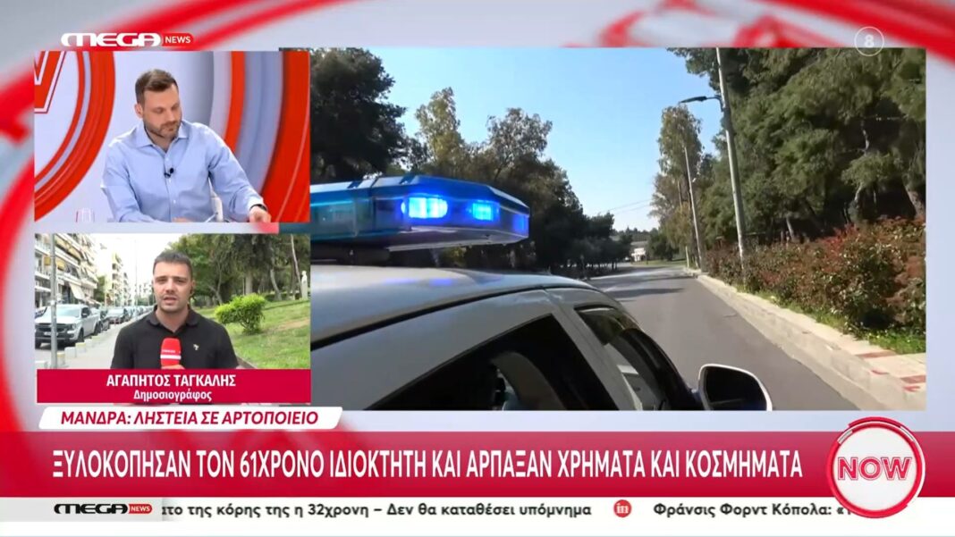 Άγριο περιστατικό σημειώθηκε στη Μάνδρα Αττικής, όταν δύο κουκουλοφόροι εισέβαλαν στο φούρνο ενός 61χρονου επιχειρηματία. Οι δράστες επιτέθηκαν με βιαιότητα στον άτυχο ιδιοκτήτη, ξυλοκοπώντας τον αλύπητα προκειμένου να αποσπάσουν χρήματα και αντικείμενα αξίας.