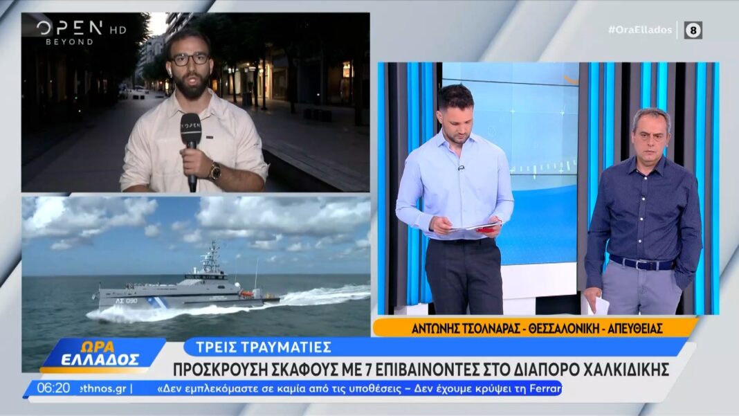 Ναυτικό ατύχημα στη Χαλκιδική με επτά επιβαίνοντες όταν σκάφος προσέκρουσε σε βραχώδη ακτή με απρόβλεπτες συνέπειες
