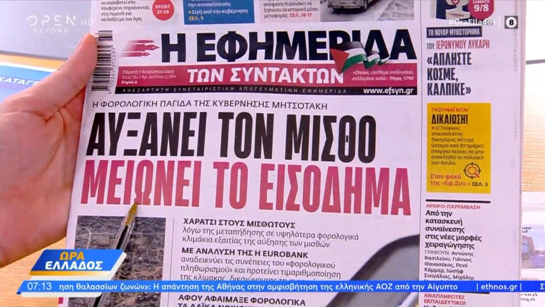 Παρουσίαση των κυριότερων θεμάτων που απασχολούν τον ημερήσιο Τύπο σήμερα, 7 Αυγούστου 2025. Αναλυτική επισκόπηση των πρωτοσέλιδων τίτλων από τις πολιτικές, οικονομικές και αθλητικές εφημερίδες της χώρας, με έμφαση στις σημαντικότερες ειδήσεις της επικαιρότητας.