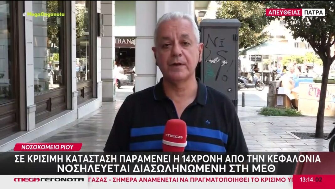 Σε κρίσιμη κατάσταση εξακολουθεί να νοσηλεύεται διασωληνωμένη στη Μονάδα Εντατικής Θεραπείας του Νοσοκομείου Ρίου η 14χρονη από την Κεφαλονιά. Η ανήλικη εμφάνισε αιφνίδια παράλυση των κάτω άκρων της πριν από τρεις ημέρες, με τους γιατρούς να πραγματοποιούν σειρά εξετάσεων για τη διάγνωση.