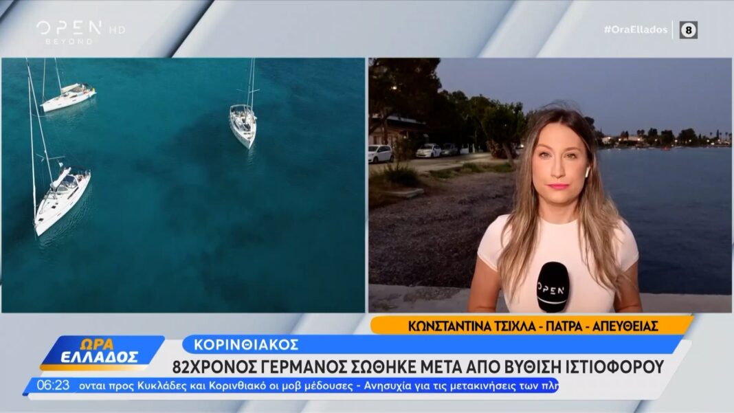Ένας 82χρονος Γερμανός πολίτης διασώθηκε χθες το μεσημέρι από τα νερά του Κορινθιακού κόλπου, στη θαλάσσια περιοχή της Λυκοποριάς. Το ιστιοφόρο στο οποίο επέβαινε βυθίστηκε κάτω από αδιευκρίνιστες συνθήκες, αφήνοντας τον ηλικιωμένο άνδρα να παλεύει με τα κύματα.