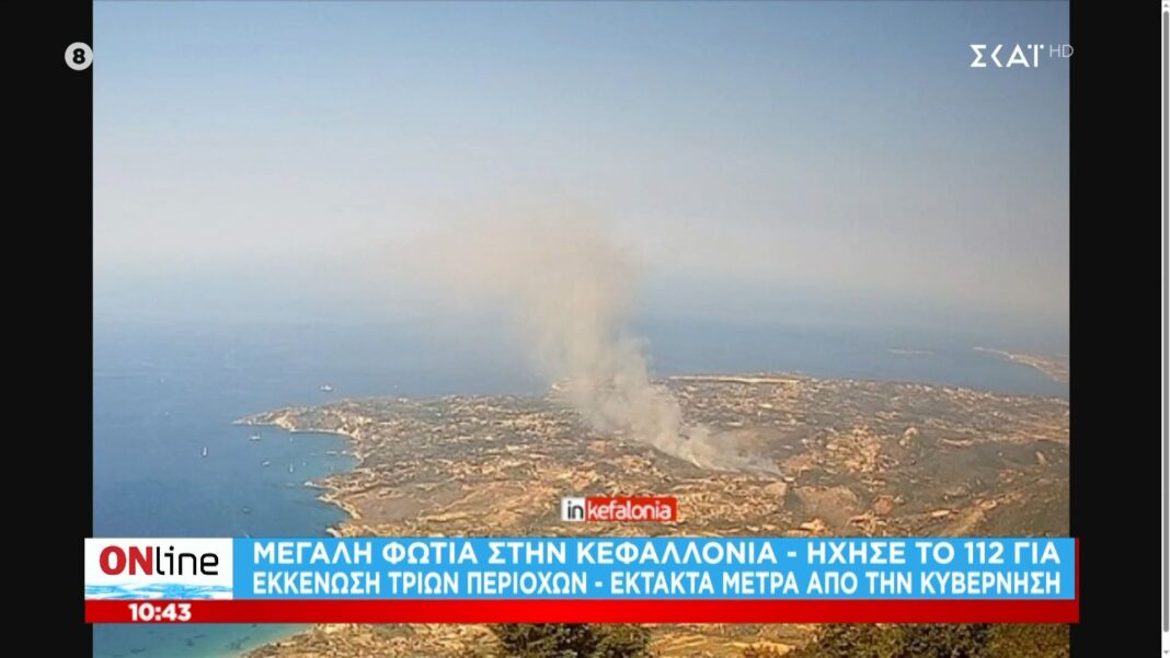 Μεγάλη πυρκαγιά μαίνεται από το πρωί στην Κεφαλλονιά, με τις φλόγες να απειλούν κατοικημένες περιοχές. Το σύστημα έγκαιρης προειδοποίησης 112 ενεργοποιήθηκε, καλώντας τους κατοίκους τριών οικισμών να εκκενώσουν άμεσα προς ασφαλέστερες τοποθεσίες.