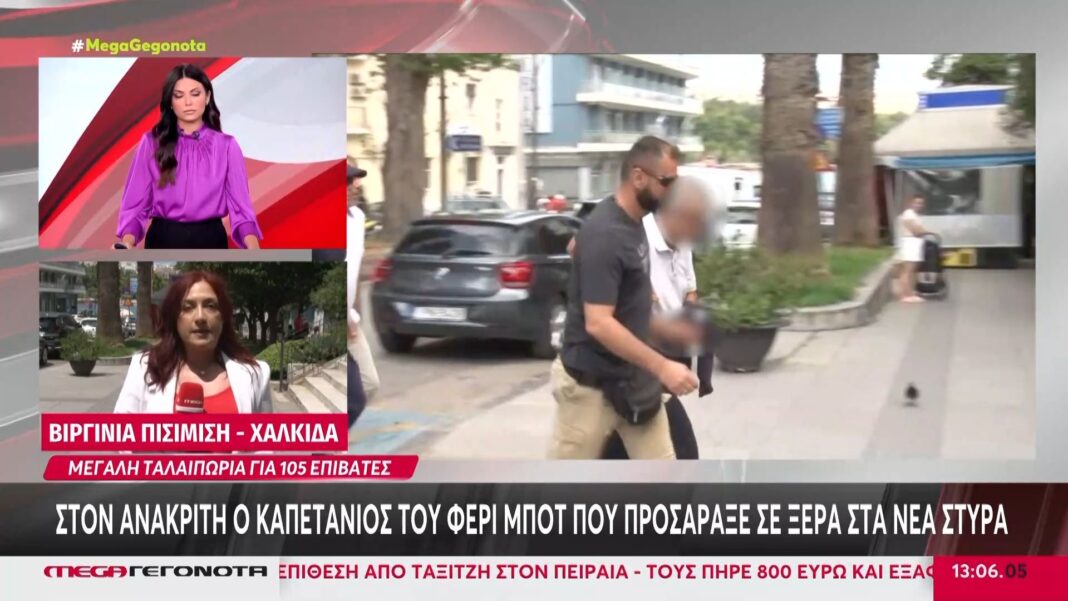 Ο πλοίαρχος του φέρι μποτ που προσάραξε σε ξέρα στην περιοχή των Νέων Στύρων οδηγήθηκε σήμερα στον ανακριτή. Στην απολογία του, ο καπετάνιος φέρεται να απέδωσε το περιστατικό σε στιγμιαία βλάβη του πηδαλίου, η οποία δεν του επέτρεψε να ελέγξει το σκάφος έγκαιρα.