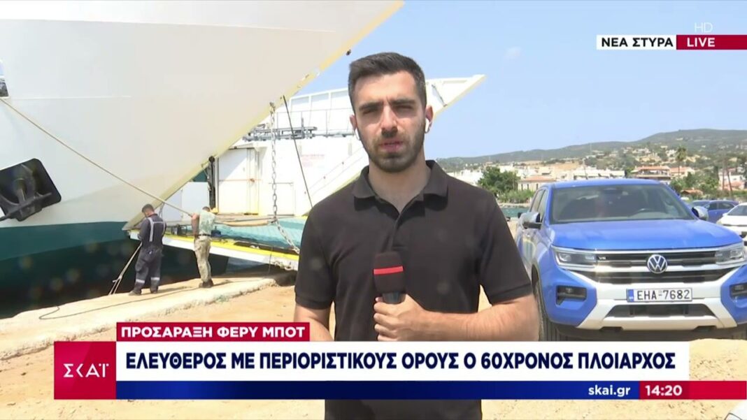 Μετά από πολύωρη απολογία ενώπιον των αρχών, ο καπετάνιος του πλοίου που προσάραξε στα Νέα Στύρα αφέθηκε ελεύθερος με περιοριστικούς όρους. Οι ανακριτικές αρχές έκριναν ότι δεν συντρέχουν λόγοι προφυλάκισης, επιβάλλοντας ωστόσο απαγόρευση εξόδου από τη χώρα και τακτική εμφάνιση στο αστυνομικό τμήμα.