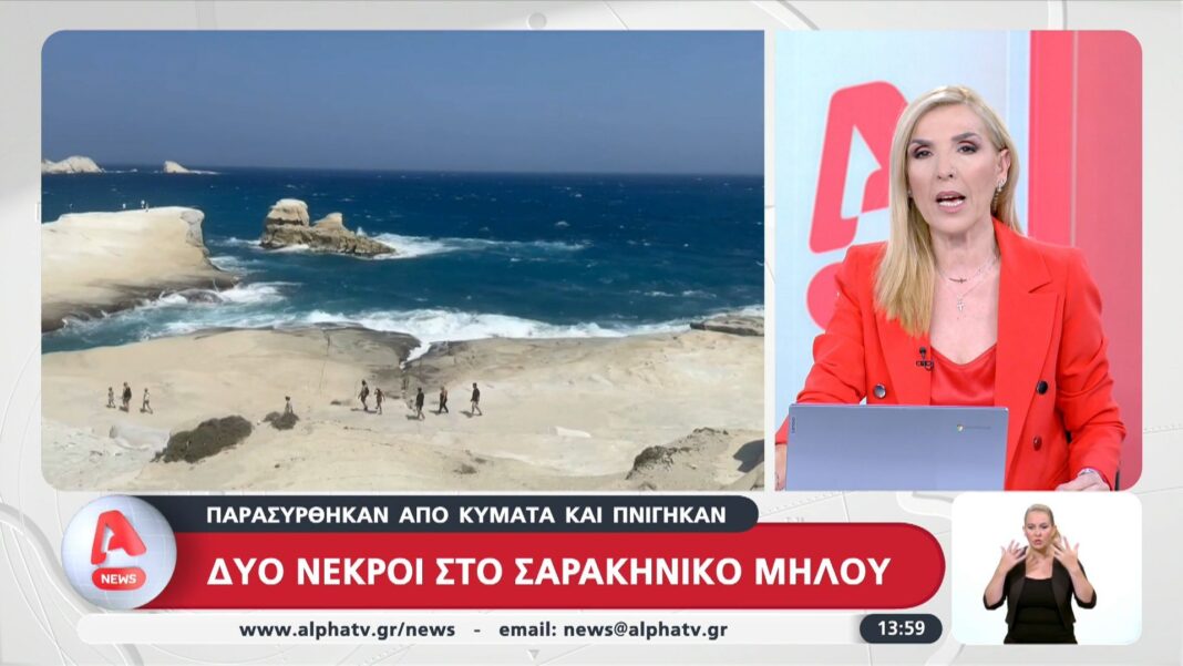 Τραγικό δυστύχημα σημειώθηκε στην παραλία Σαρακήνικο της Μήλου, με αποτέλεσμα δύο άνθρωποι να χάσουν τη ζωή τους. Οι συνθήκες ήταν εξαιρετικά επικίνδυνες, καθώς επικρατούσαν άνεμοι εντάσεως 8 μποφόρ, δημιουργώντας απαγορευτικές συνθήκες για κολύμβηση.