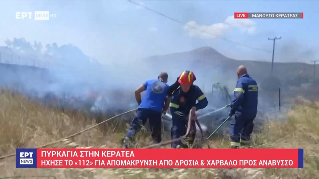 Σοβαρή κατάσταση επικρατεί στην ευρύτερη περιοχή της Κερατέας, καθώς πυρκαγιά μεγάλης έκτασης απειλεί κατοικημένες περιοχές. Οι αρχές ενεργοποίησαν το σύστημα συναγερμού 112, καλώντας τους κατοίκους των περιοχών Δροσιά και Χάρβαλο να εκκενώσουν άμεσα τα σπίτια τους και να κατευθυνθούν προς την Ανάβυσσο για την ασφάλειά τους.