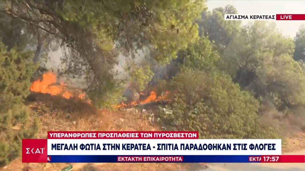 Μεγάλη πυρκαγιά στην Κερατέα με εκκενώσεις οικισμών μέσω 112 - Πυροσβεστικό σώμα σε επιφυλακή για την αντιμετώπιση του μετώπου