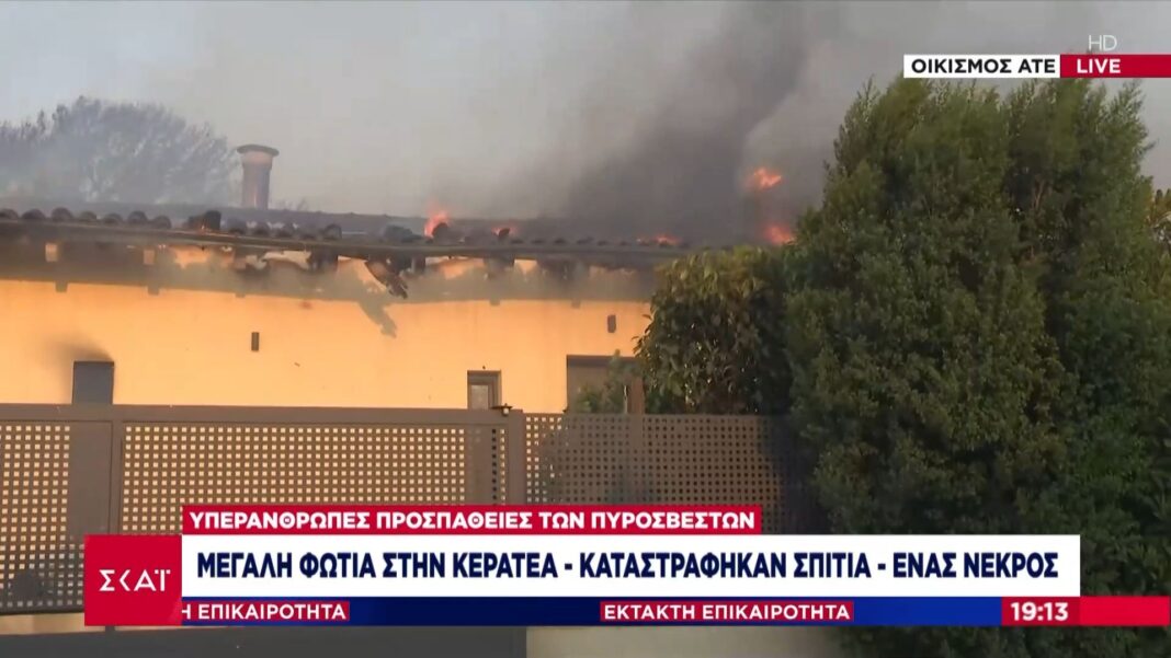Δραματικές στιγμές εκτυλίχθηκαν στον οικισμό ΑΤΕ στην Κερατέα, όπου μια κατοικία παραδόθηκε ολοσχερώς στις φλόγες. Η πυρκαγιά, που ξέσπασε υπό αντίξοες καιρικές συνθήκες με ισχυρούς ανέμους, εξαπλώθηκε με μεγάλη ταχύτητα αφήνοντας πίσω της καταστροφή.