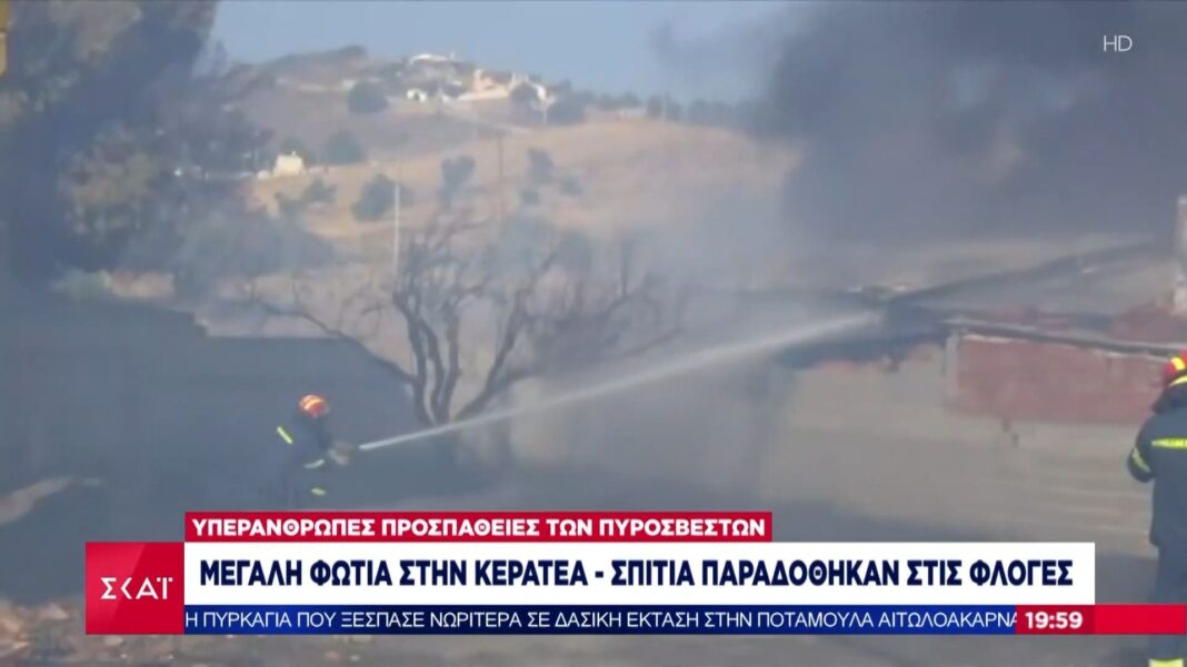 Η πυρκαγιά που ξέσπασε στην περιοχή της Κερατέας εξελίχθηκε ραγδαία λόγω των ισχυρών ανέμων, αφήνοντας πίσω της καταστροφικό έργο. Αρκετές κατοικίες τυλίχτηκαν στις φλόγες, ενώ δεκάδες στρέμματα δασικής έκτασης έχουν καεί ολοσχερώς, προκαλώντας τεράστια οικολογική καταστροφή στην περιοχή.