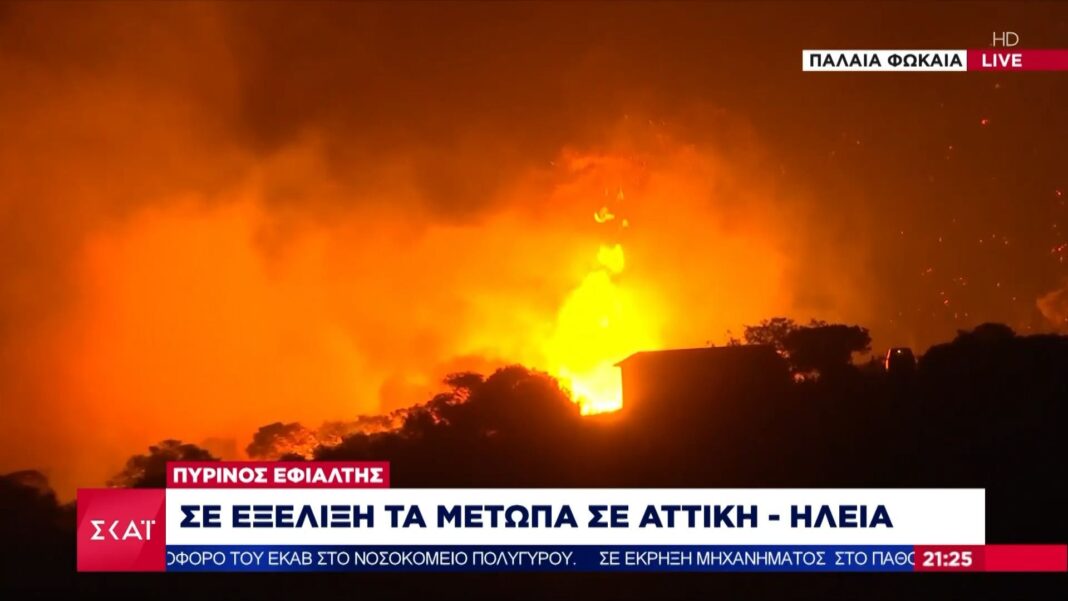Η φωτιά που ξέσπασε στην περιοχή της Παλαιάς Φώκαιας συνεχίζει να καίει ανεξέλεγκτα σε δύσβατο έδαφος, δυσχεραίνοντας το έργο των πυροσβεστικών δυνάμεων. Ισχυροί άνεμοι και οι υψηλές θερμοκρασίες δημιουργούν συνεχείς αναζωπυρώσεις, επεκτείνοντας την πύρινη λαίλαπα σε νέες περιοχές.
