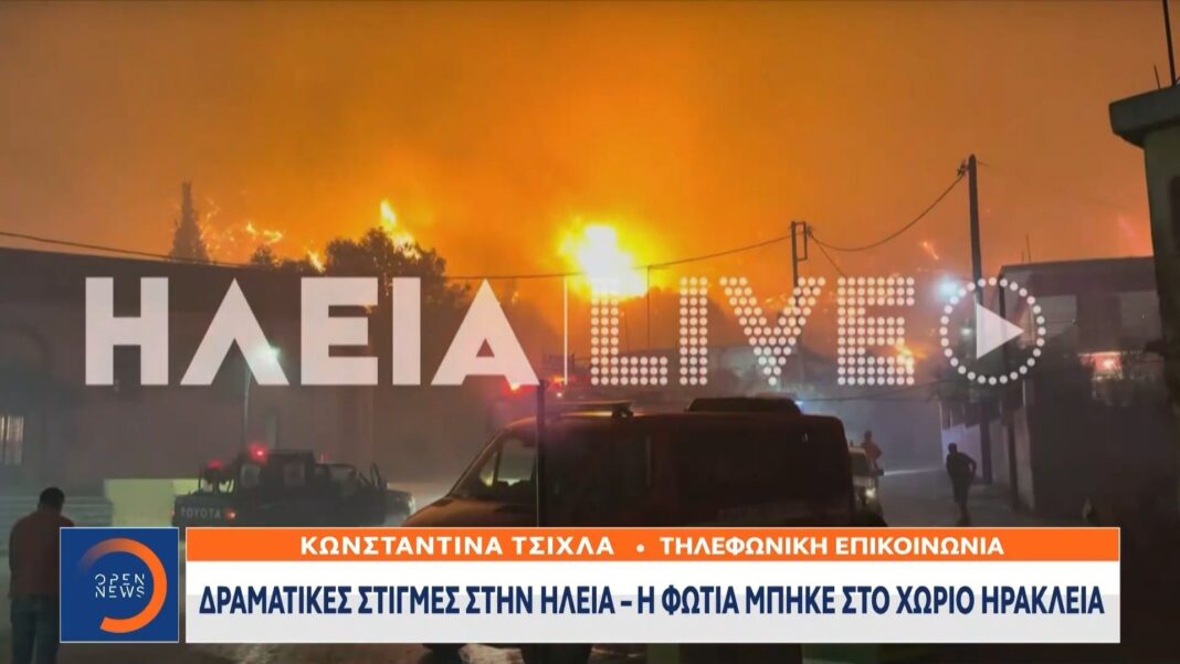 Ισχυρές δυνάμεις της Πυροσβεστικής επιχειρούν στην περιοχή της Ηράκλειας Ηλείας, όπου οι φλόγες εισέβαλαν στον οικισμό απειλώντας κατοικίες και περιουσίες. Οι κάτοικοι απομακρύνθηκαν εσπευσμένα, ενώ οι ισχυροί άνεμοι δυσχεραίνουν το έργο της κατάσβεσης.