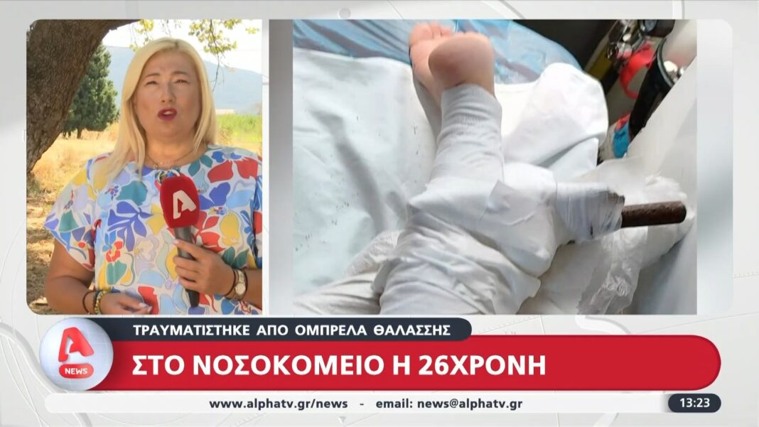 Σοβαρό περιστατικό σημειώθηκε σε παραλία της Χαλκιδικής, όταν μια ομπρέλα θαλάσσης παρασύρθηκε από τους ισχυρούς ανέμους που έπνεαν στην περιοχή. Η ομπρέλα καρφώθηκε στο πόδι μιας 26χρονης κοπέλας, προκαλώντας της σοβαρό τραυματισμό που απαίτησε άμεση ιατρική φροντίδα.